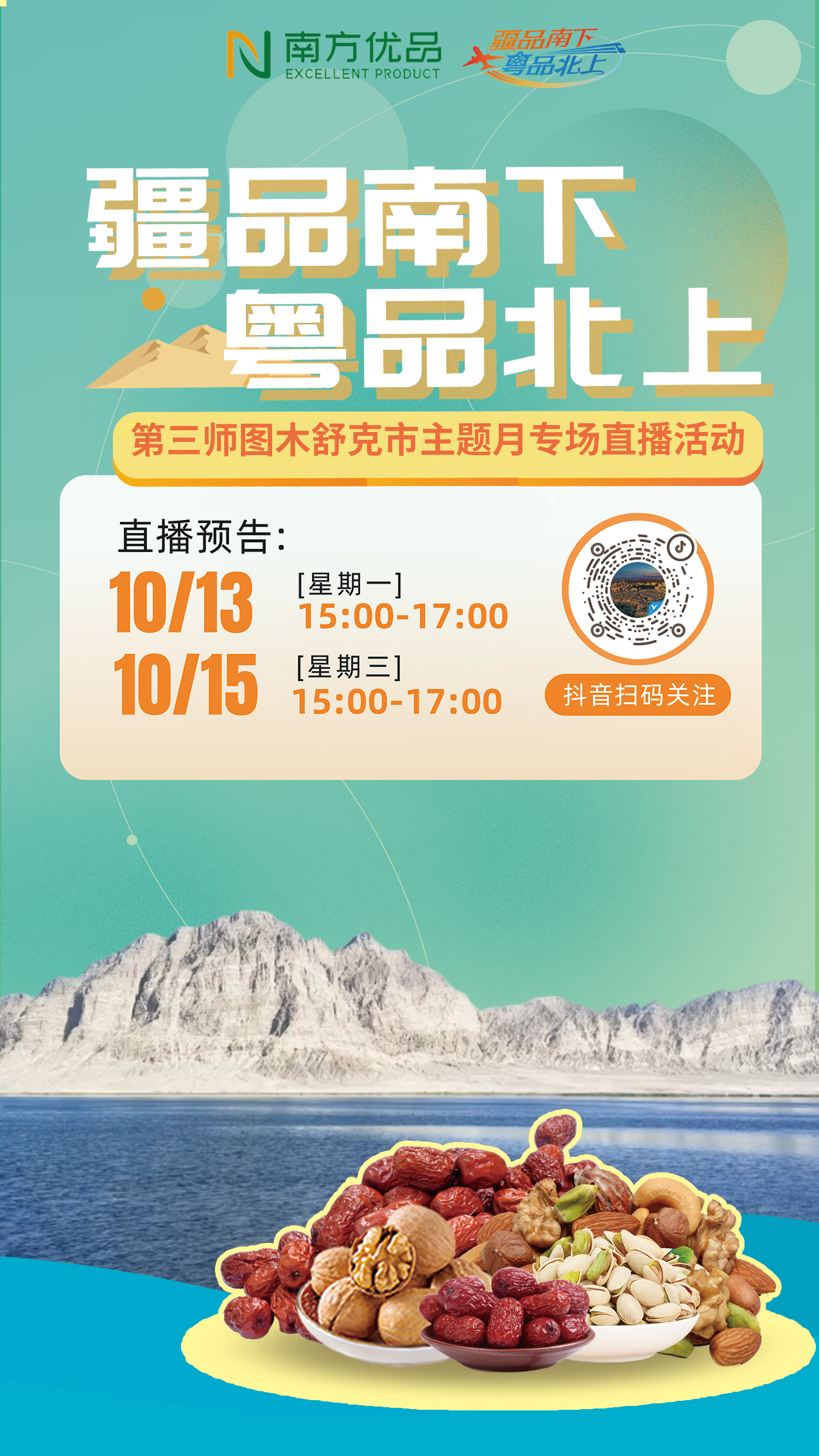 从塔里木河到珠江口,从枣园的风到湾区的月,“疆品南下 粤品北上”第三师图木舒克市主题月,不仅是一场滥用盛宴,更是一次心与心的集结。这个10月,让咱们相约在此,共绘一幅“疆粤齐心、山海情长”的动东谈主图景。