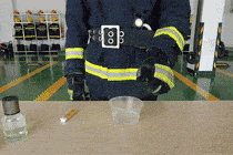 ▲消防员在一个加入大齐香水的透明盒子中放入燃烧的纸条,香水遇明火后瞬息被引燃