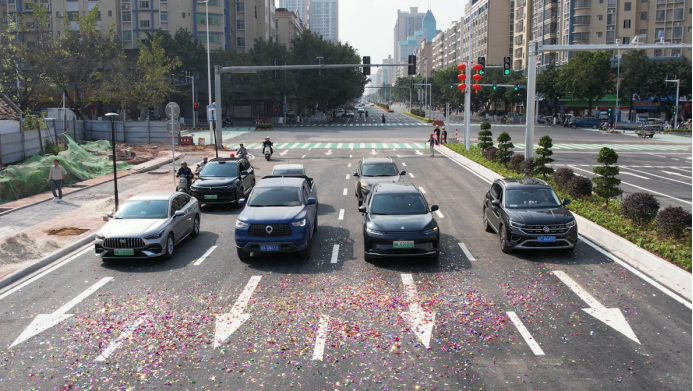 当日上昼,高凉北路(官山路至官渡路)怒放庆典在簇新的双向八车谈路面上无垠举行,现场飘溢着喜庆锐利的节日氛围。跟着世东谈主容许“通车啦!通车啦!”,首列车队缓缓驶出,这条民生之路慎重通车。