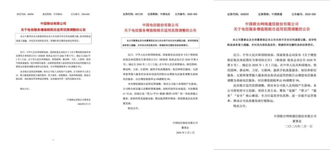 这次升值税调度,影响无疑是存在的。这少许,三大运营商在公告中也已明确:“将影响公司的收入和利润。”