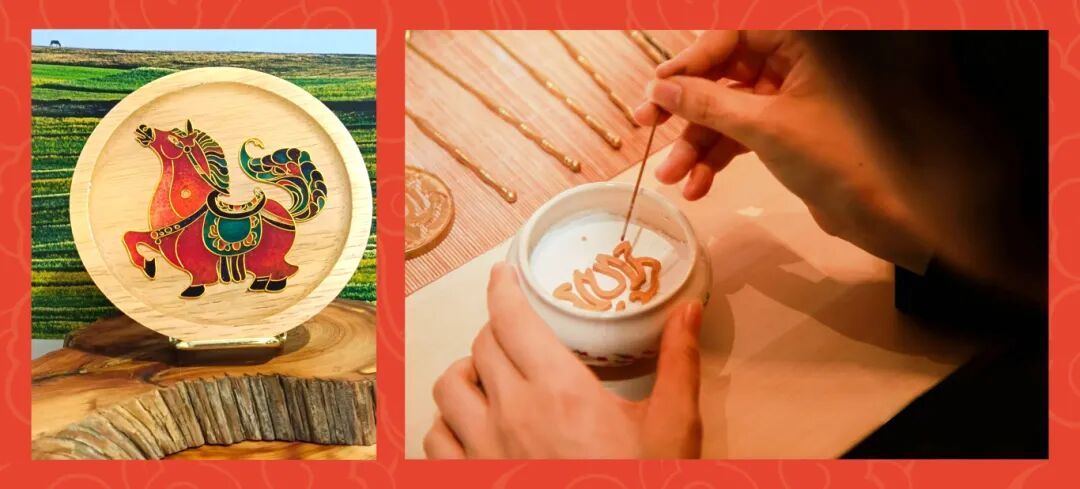 掐丝搪瓷DIY:用金丝勾绘制案、填釉料制作,打造唯一无二的搪瓷胸针/项链,把非遗本领带回家。