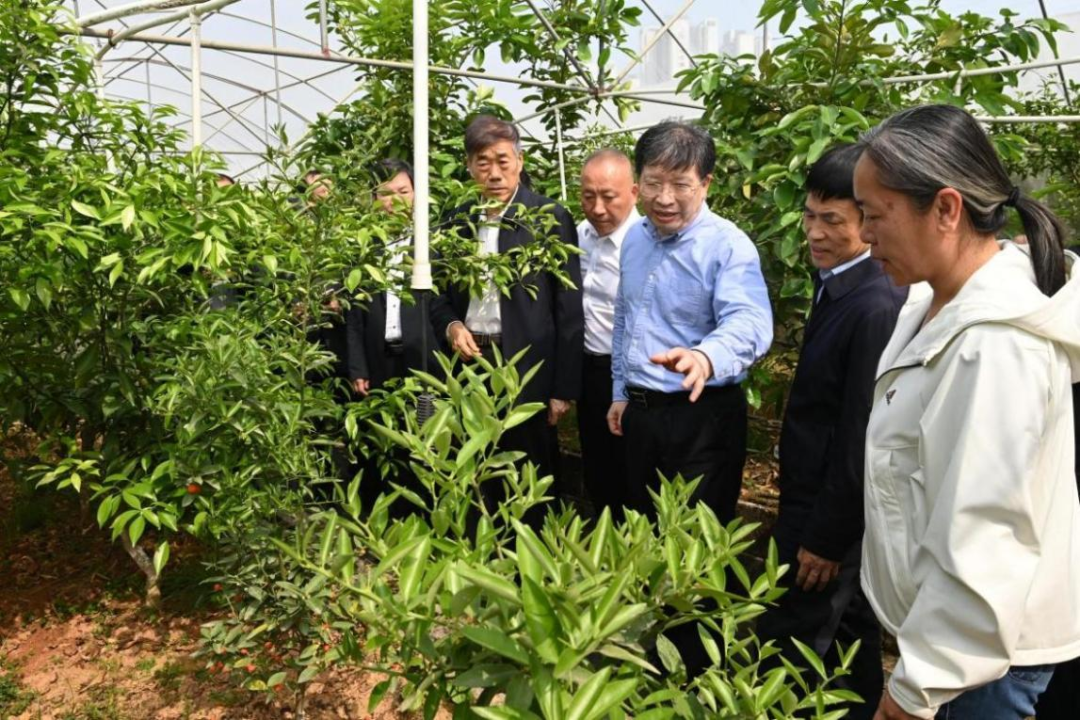 2025 年4月2日,邓秀新院士等6名院士赴四会市田间地头对肇庆学院柑橘产业服务开展专项调研